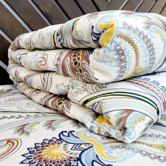 Comforter Bedding Combo Set Double Bed, Microfiber, Paisley Ivory White